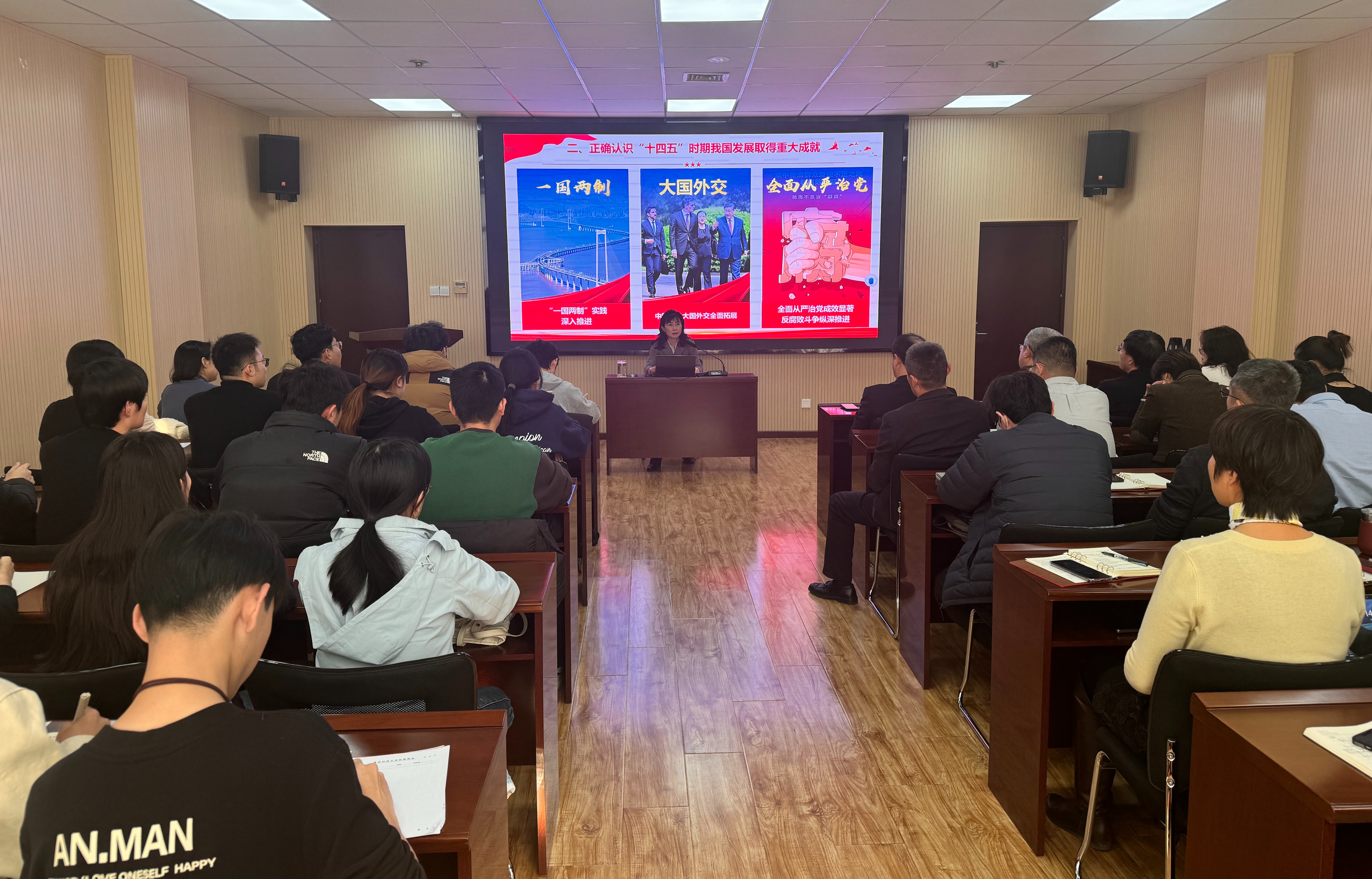 12月4日下午,党委副书记沈文青以《奋楫扬帆启新程 担当作为谱新篇——深入学习贯彻党的二十届四中全会精神》为题,为世俱杯买球入口、信息科学技术世俱杯买球入口、世俱杯买球入口师生代表作专题辅导报告,推动党的创新理论深入基层、落地生根。