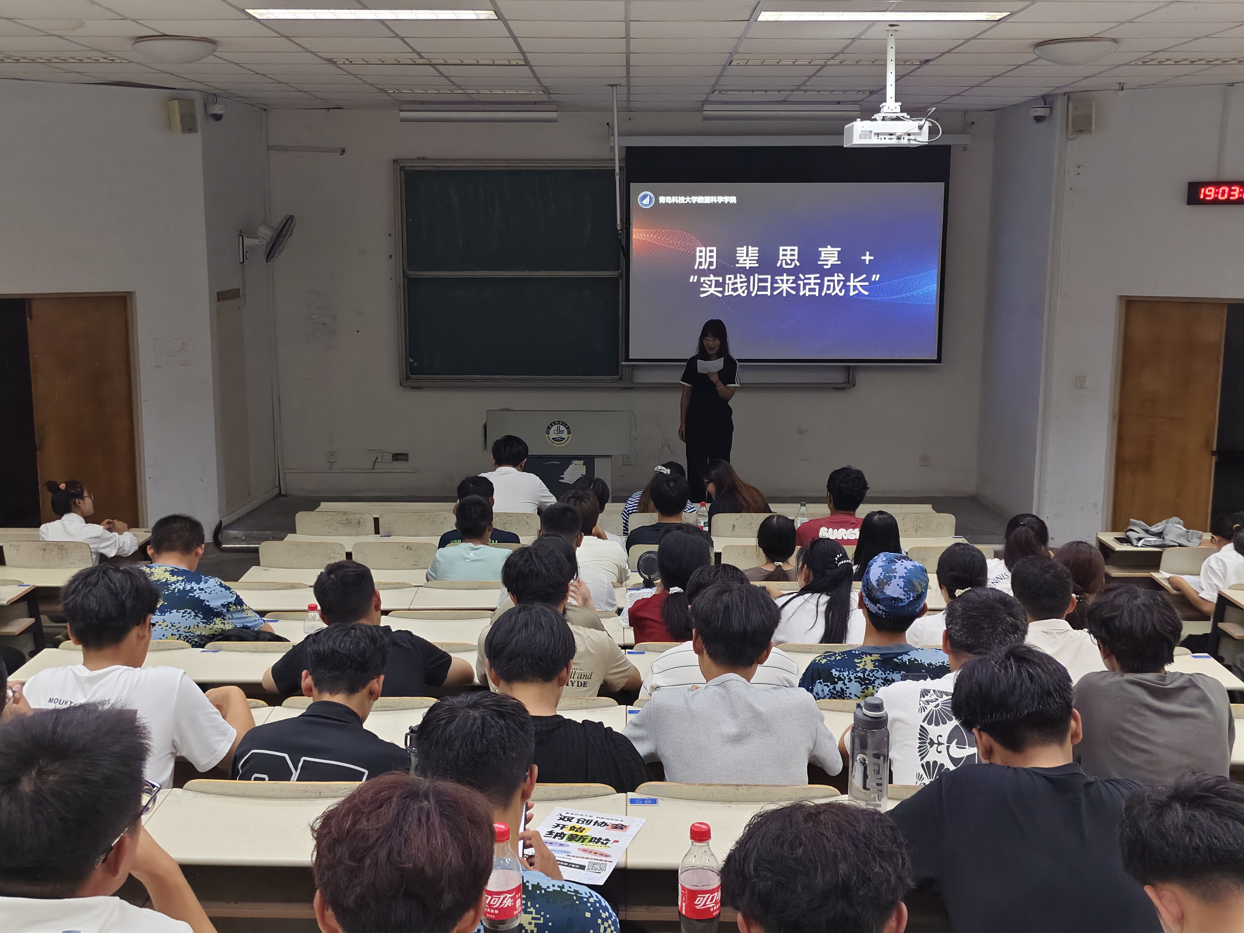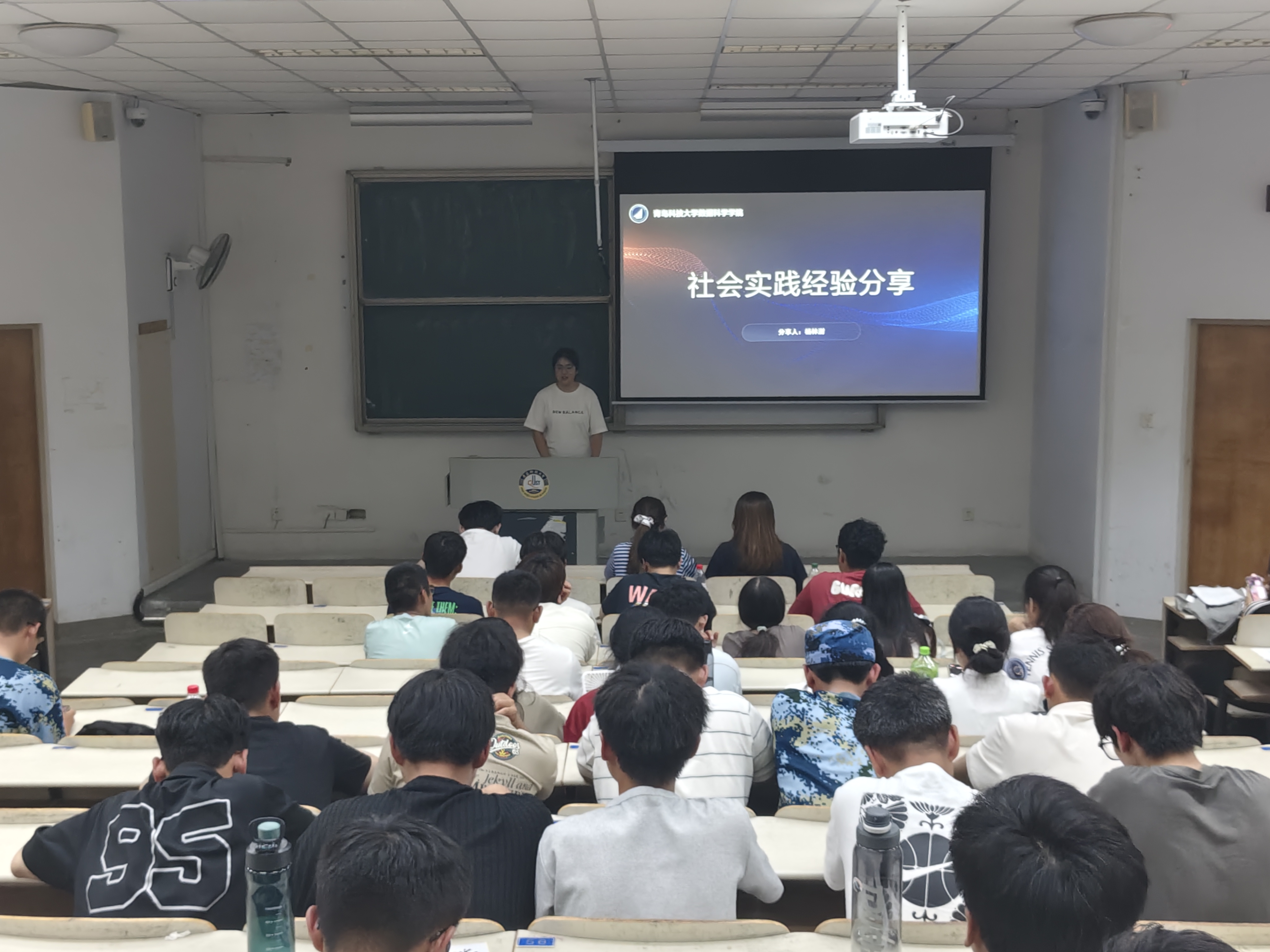 人工智能232班团支书杨林澍则基于自身实践经验,系统梳理并介绍了大员工社会实践的主要流程,围绕“筹备、开展、总结”等关键环节,为新生提供了清晰的指导,帮助大家初步建立起对社会实践的系统认识。