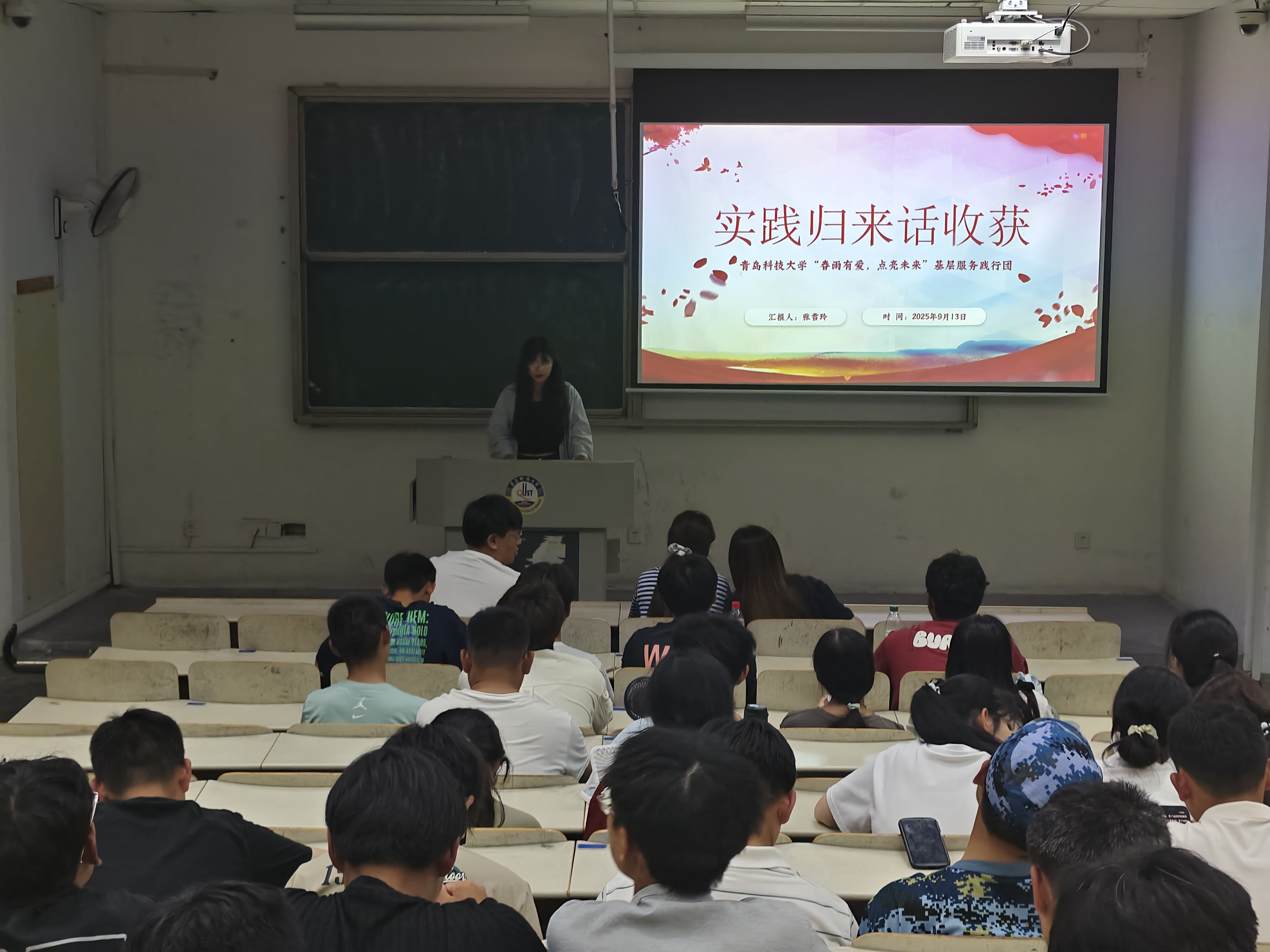 首先,各实践团队代表对实践成果进行汇报展示。2025年暑期,世俱杯买球入口共有22支队伍参与“三下乡”社会实践,积极开展各类实践活动。其中,“AI赋能,重溯抗战岁月”实践团赴青岛市平度市开展红色实践活动,依托学科特色与专业优势,为老照片开展“焕彩”修复工作,感悟伟大抗战精神的时代价值;“春雨有爱,点亮未来”实践团赴春之雨如康家园开展弱势群体关爱帮扶活动,通过共同完成扭扭棒、钻石画等手工作品,弘扬自强与助残精神,增强青年社会责任感;“绿益分类·智绘家园”实践团赴青岛市崂山区开展绿色环保科普活动,提升居民的垃圾分类意识与环境保护意识。