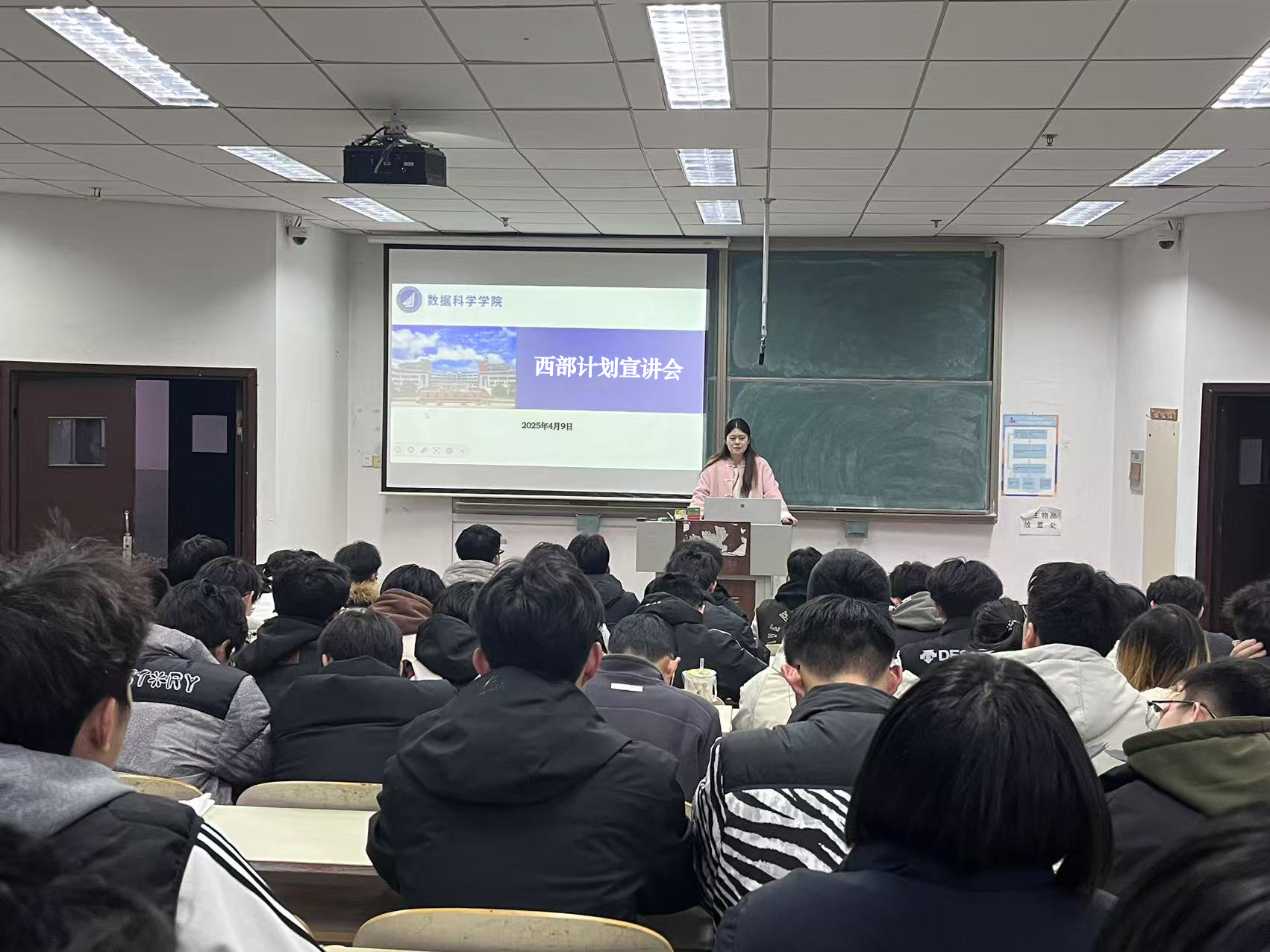随后,卞文馨详细介绍了西部计划的报名方式、岗位类型、服务地区、政策保障等内容,并结合往届志愿者的真实案例,分享他们在服务期间的成长经历与感悟,激发了同学们浓厚的参与兴趣。