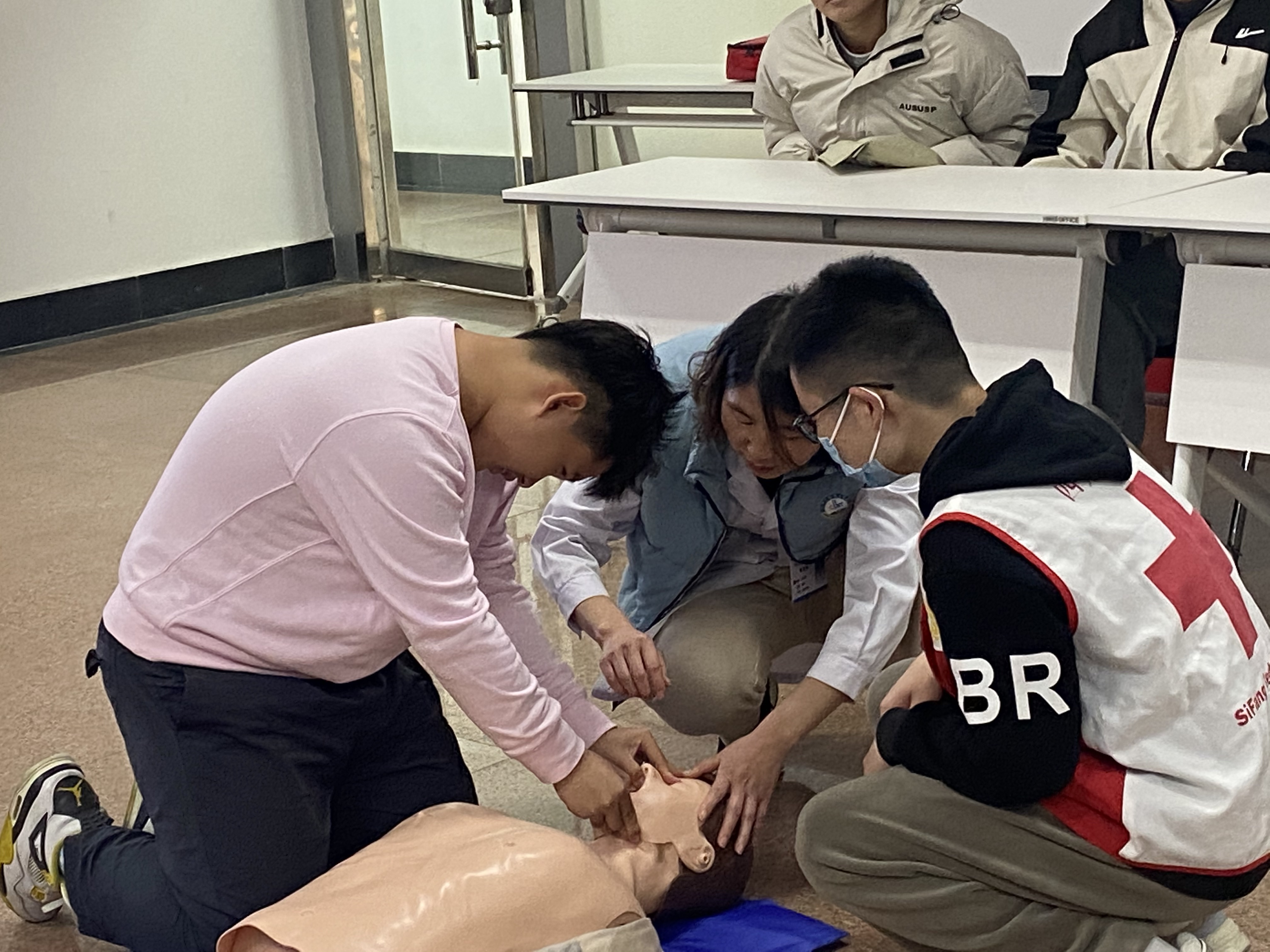 实践操作环节为课程核心亮点,实现理论知识向实用技能的高效转化。高术华通过 “1001 计数法”等口诀,现场演示心肺复苏黄金四分钟操作规范、体外自动除颤器使用流程及海姆立克急救法,结合肢体动作演示强化技能记忆点。董泽瑞同学辅助在场学子进行实操体验,逐一纠正操作细节,确保学子掌握急救核心技能。课程尾声,世俱杯买球入口同步发布流感疫苗预约通知,针对当前流感防控需求,特别提醒有接种需求的学子及时咨询办理预约事宜,切实为学子健康提供保障。