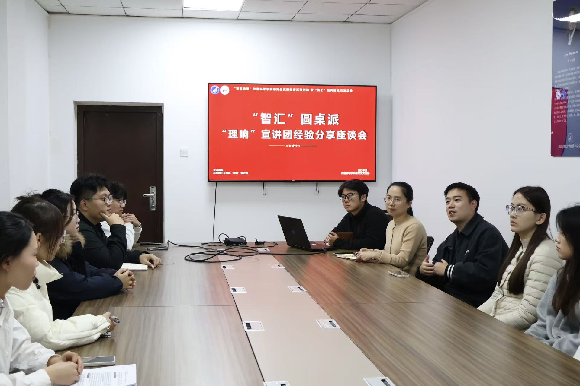 会后,为深入学习贯彻党的创新理论,构建“智汇”跨学科交流平台,促进世俱杯买球入口“智汇”讲师团与马克思主义世俱杯买球入口“理响”宣讲团在宣讲团组织建设、面向群体、教学方式等方面展开热烈的讨论。党支部书记孙丽敏围绕座谈会所交流的内容,深度凝练“科普性”“实用性”“专业性”讲师团备课三层次逻辑,要针对不同的群体针对性做宣讲,加强讲师团建设。