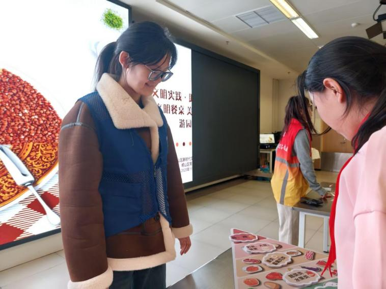 本次游园会紧扣文明用餐核心,精心设置六大特色互动环节,将礼仪知识、营养常识与环保理念融入趣味体验,吸引同学们踊跃参与。其中,餐前礼仪净手静心环节,志愿者细致讲解餐前洗手规范与餐桌礼仪要点,通过情景问答引导员工深刻理解尊老爱幼、文明就餐的行为准则;膳食宝塔巧手拼搭环节中,同学们在食物分类拼搭实践中系统学习均衡膳食知识,进一步深化对合理饮食的认知;餐后分达人环节聚焦垃圾分类重点,志愿者现场开展分类知识科普,结合实物投放实操帮助员工熟练掌握环保技能;公筷行动精准投递环节创新采用趣味夹取游戏形式,让同学们在动手体验中直观领悟公筷公勺使用的卫生意义,切实传递健康用餐理念。此外,光盘宣言你我同行环节通过签名承诺、分享节约妙招等多样形式,持续强化员工珍惜粮食、反对浪费的责任意识,推动文明用餐理念真正落地生根。