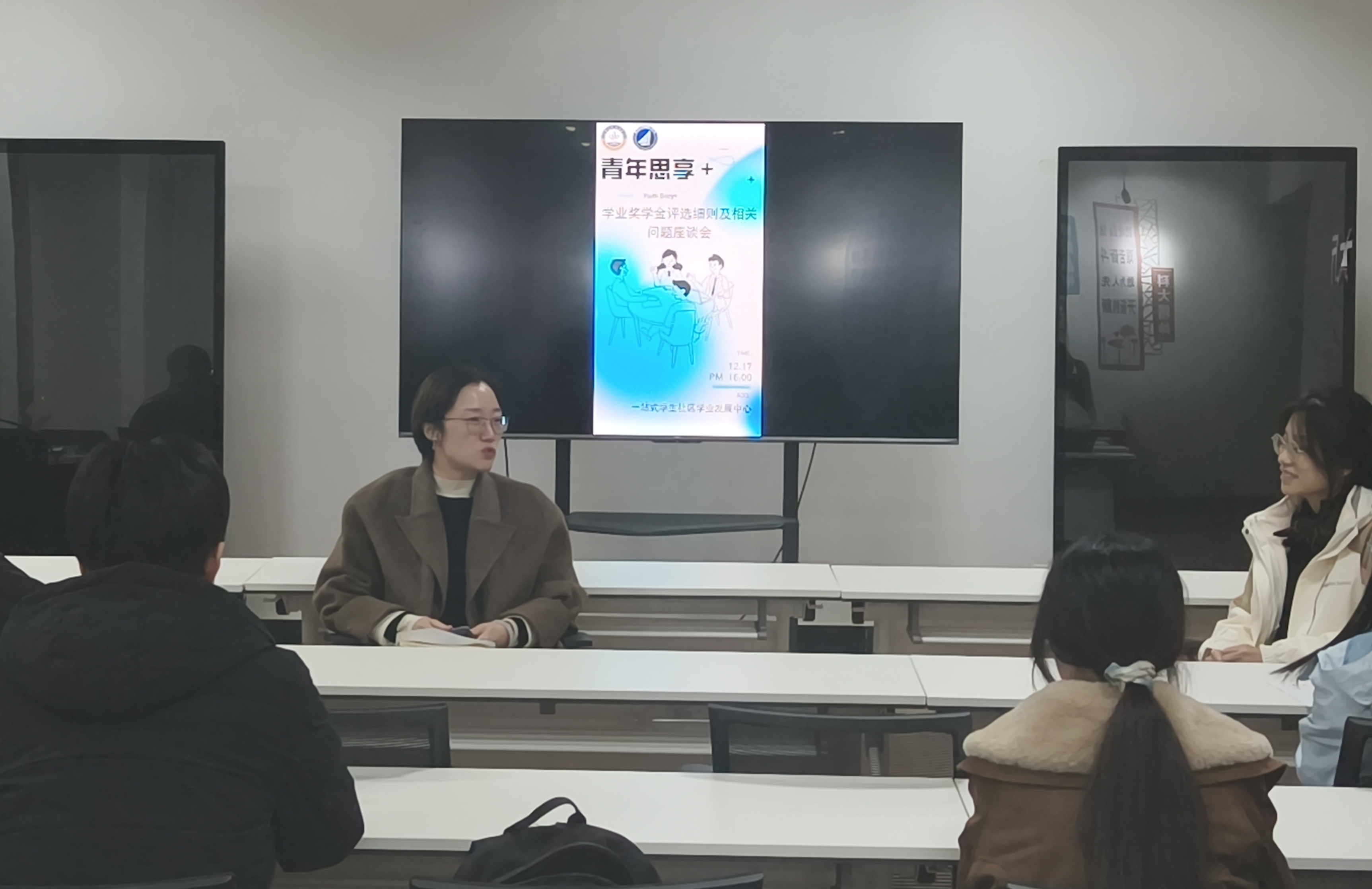 座谈会上,顾姗姗围绕研究生评奖评优核心政策展开系统解读,重点聚焦学术成果认定标准、综合素质测评指标、科研实践加分细则等关键内容,清晰明确了申报条件、材料规范及评审流程,有效规避了同学们因信息偏差可能出现的申报问题,为大家精准把握政策要点提供了有力指导。