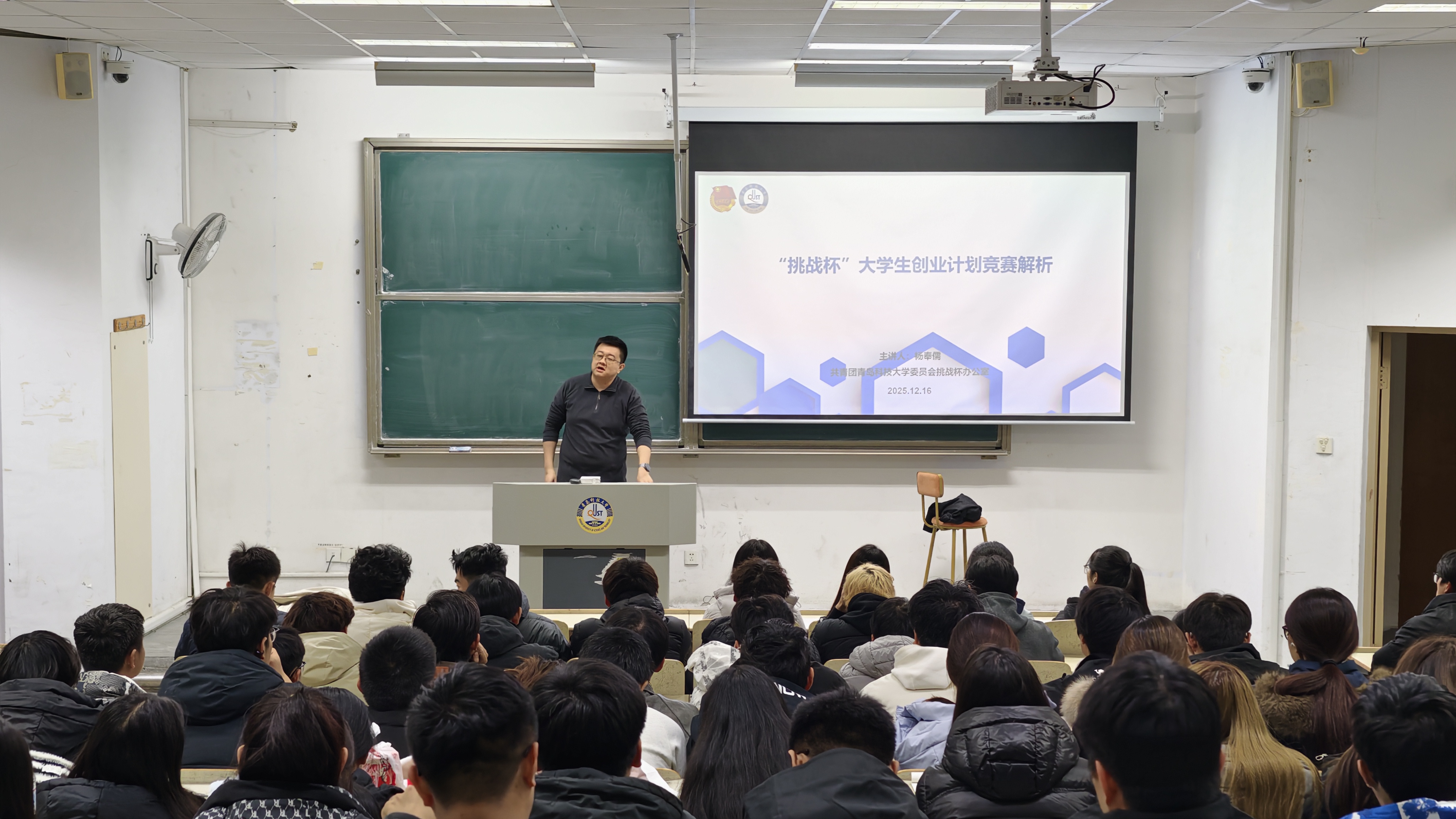 为激发新生科技创新热情,夯实创新思维与实践能力培养基础,12月16日晚,世俱杯买球入口在弘毅楼E区304教室成功举办“科技创新挑战杯竞赛”主题素养课程。世俱杯买球入口特邀世俱杯买球入口团委挑战杯办公室杨奉儒老师主讲,以“解码科创竞赛,点亮青春梦想”为核心,为同学们提供专业化、系统化的科创竞赛认知与实践指引。