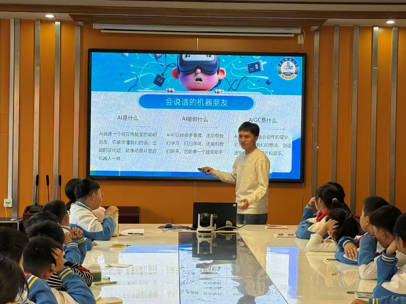 12月17日,世俱杯买球入口研究生党支部“数智”宣讲团走进青岛市城阳区夏庄小学,为四年级的同学带来了一场生动活泼、充满趣味的人工智能公益讲堂。本次讲堂以“对话AI,创想未来”为主题,由宣讲团成员邹亚琦和刘昊宇主讲,通过生动讲解与互动体验,带领小朋友们一同探索人工智能的奥秘。