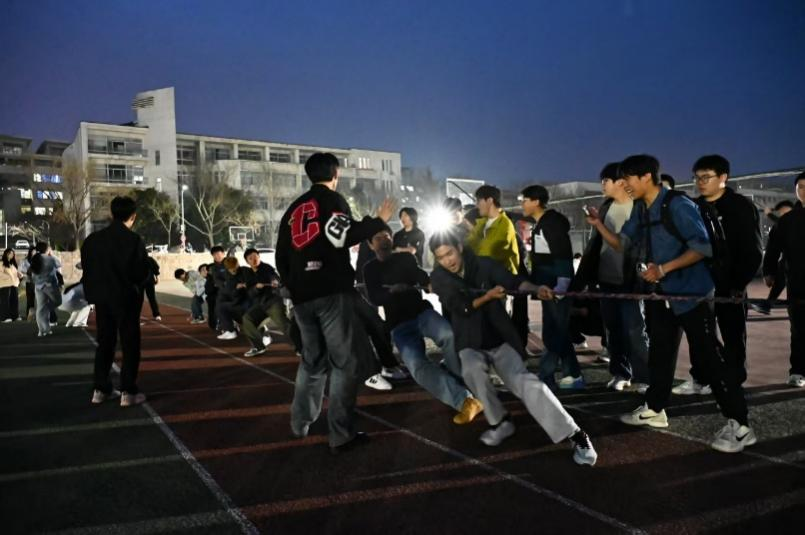 本次比赛科学设置竞赛组别,同学们自主组建队伍,其中男生组每队十人、女生组每队五人,合理的赛事安排保障了活动有序开展。比赛正式开始后,随着裁判哨声吹响,各参赛队伍迅速进入状态。队员们紧握绳索、稳扎马步、凝心聚力,充分彰显坚韧奋进的青春姿态。赛场之外,围观同学热情高涨,热烈的氛围贯穿全程,让赛场活力持续升温。