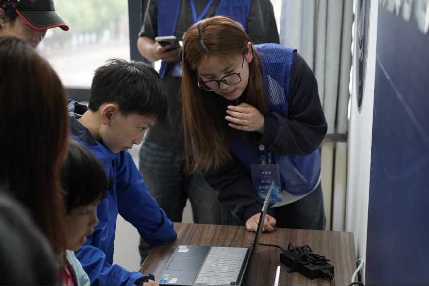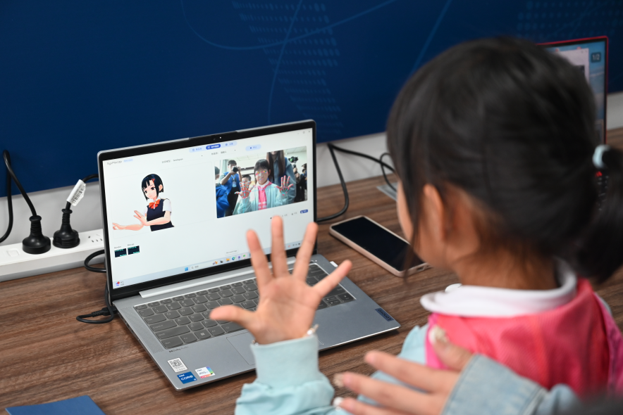 随后,研学队伍移步数智赋能中心,开展智能手语交互系统科创体验。志愿者详细介绍项目自研AI手语交互系统,同学们分组上手体验,将刚学会的手语动作与系统互动,亲眼见证手势被精准识别转化,直观感受科技赋能无障碍的强大力量。现场设置手语趣味互动小游戏,让同学们在实操中巩固手语知识,在探索中激发科创兴趣,主动思考人工智能与公益无障碍事业的融合价值。