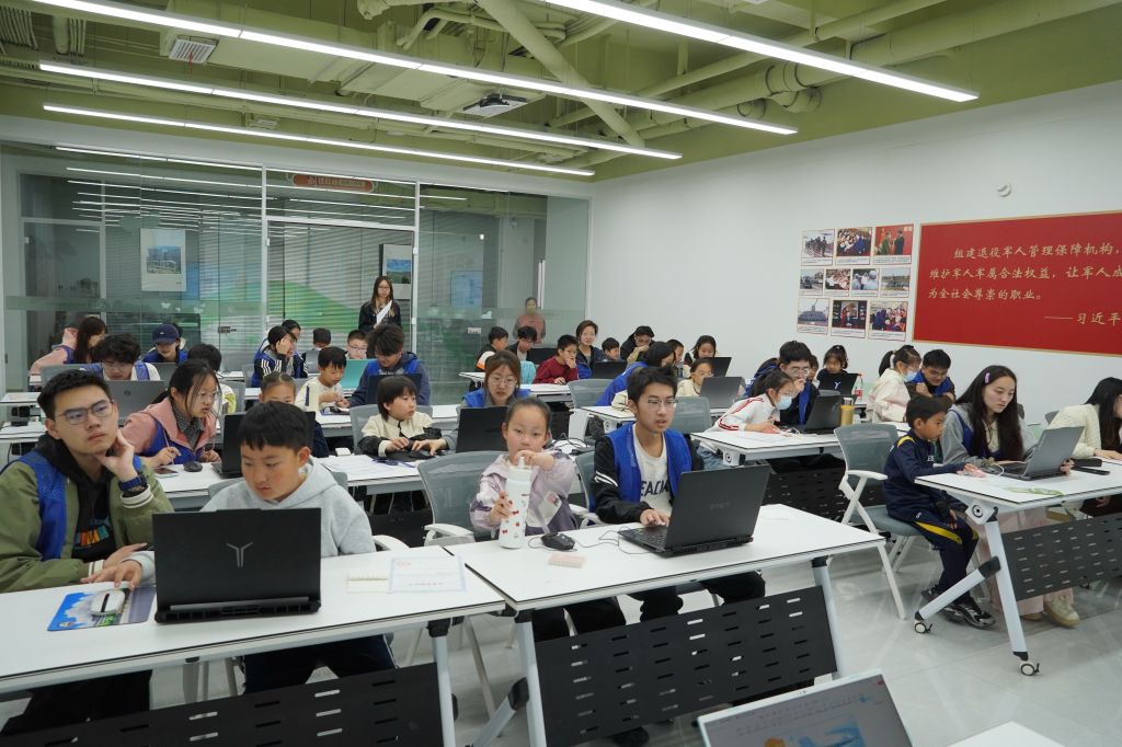 活动过程中,志愿者分组指导,耐心解答疑问,引导孩子们动手完成动画创作,并鼓励分享编程思路与创作想法。现场氛围热烈,孩子们在实践中感受编程乐趣,锻炼逻辑思维与动手能力。