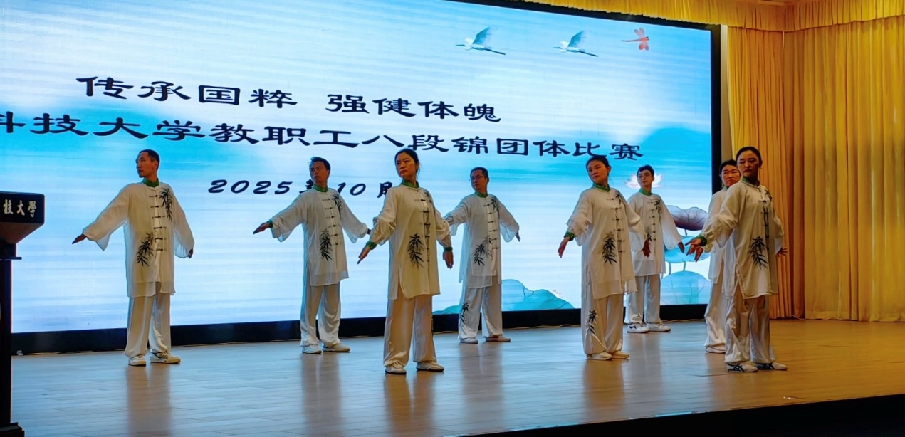 10 月 28 日,世俱杯买球入口教职工八段锦团体比赛如期举行。全校 17 支队伍同台竞技,经激烈角逐与专业评审,世俱杯买球入口教职工代表队凭借规范流畅的动作、整齐划一的队形及饱满精神状态,脱颖而出,荣获比赛第一名。