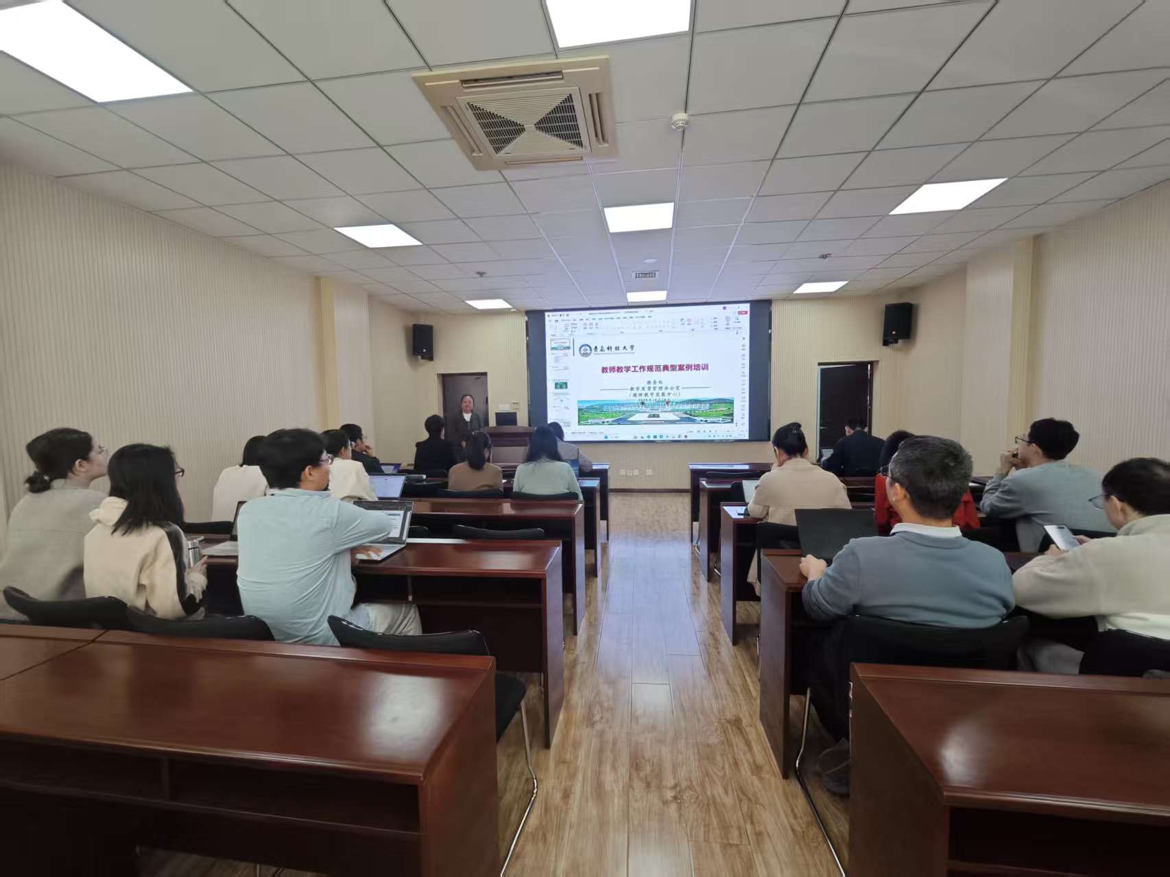 培训会上,陈卓老师以教学工作典型案例为切入点,围绕教学管理全流程展开系统讲解:从员工教学工作规范的深度解读、教学典型事件的细致剖析,到优秀课堂实例的直观展示,层层递进地梳理关键内容。助力全院员工快速掌握课堂管理、教学审批、命题监考、课程归档等核心环节的操作要点与规范要求,切实提升教学管理实操能力。