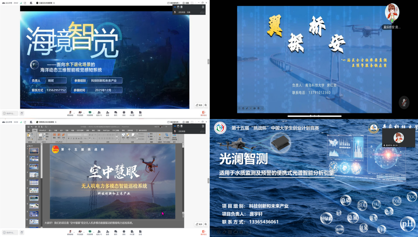 各团队依次进行线上路演展示。项目选题广泛覆盖海洋监测、桥梁检测、水下视觉等方向,既锚定国家战略要求,又体现员工科技创新成果。