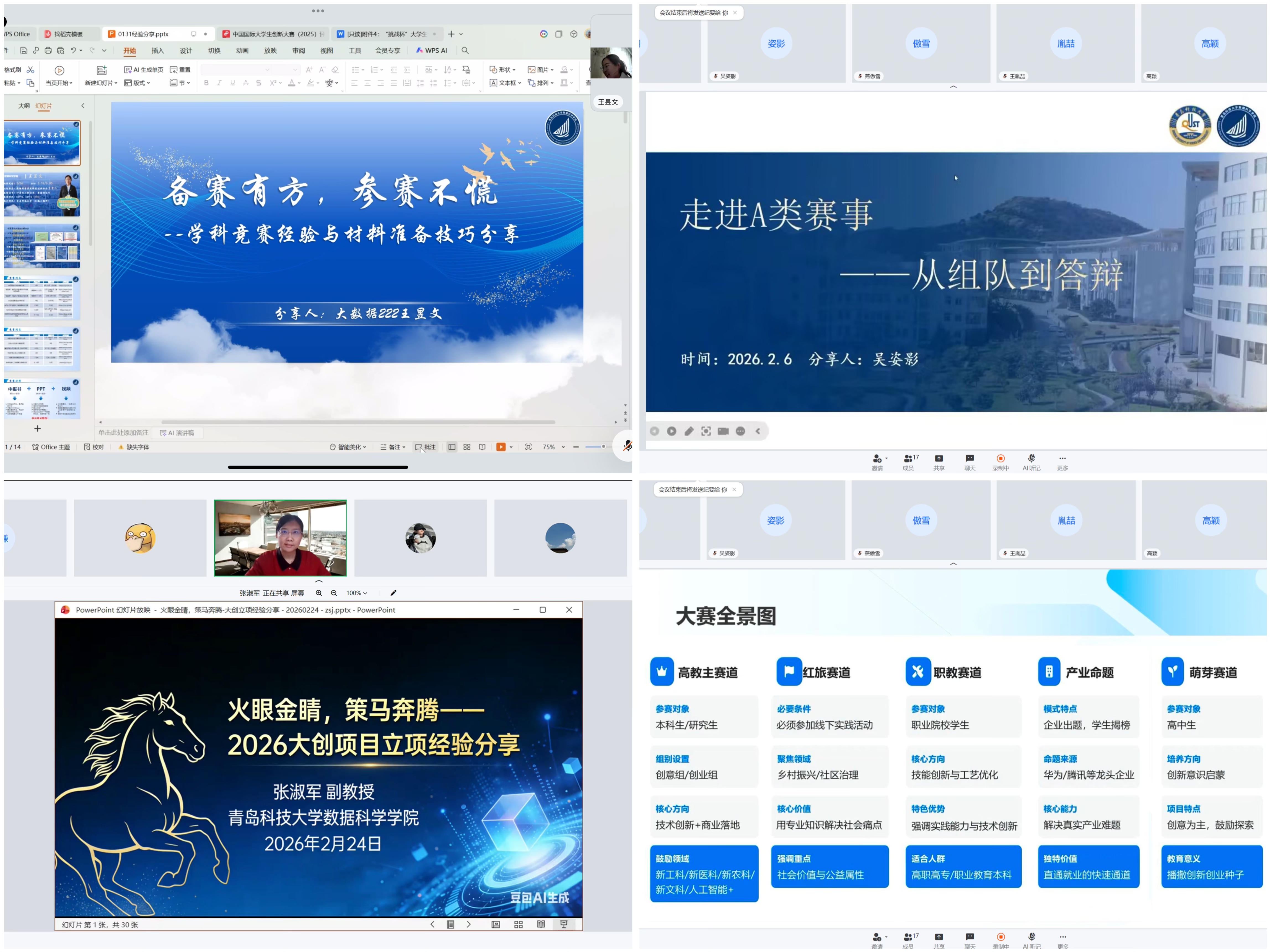 本次科创训练营精准对接学子备赛痛点与成长需求,精心规划分享内容、汇聚优质指导力量,构建起全维度、多层次的备赛指导体系。四期分享内容各有侧重、层层递进,精准适配不同阶段科创爱好者的需求,实现靶向赋能:世俱杯买球入口科技创新协会负责人、2022级本科生王昱文带来《备赛有方·参赛不慌》学科竞赛入门分享,为科创新手梳理入门路径、破解入门瓶颈,帮助大家快速建立对科创赛事的认知;本科生专业导师、专业负责人李雪莹聚焦《“挑战杯”中国大员工创业计划大赛备赛与推进》,深度拆解赛事规则、剖析备赛逻辑,助力学子掌握科学备赛方法;本科生专业导师、上届省A类赛事省金指导员工高颖以《中国国际大员工创新创业大赛深度解析与实战指南》为主题,解读最新竞赛政策、分享实战技巧,为学子们明晰备赛方向;A类赛事国银参赛者、省金团队负责人、2022级本科生吴姿影通过《走进A类赛事:从组队到答辩》,用亲身经历分享组队搭配、答辩展示的加分秘籍,让干货经验可学可用;本科生专业导师张淑军则以《火眼金睛策马奔腾-2026大创项目立项经验分享》,为学子们指点大创项目立项方向,细致拆解常见认知误区,助力大家高效推进项目立项。
